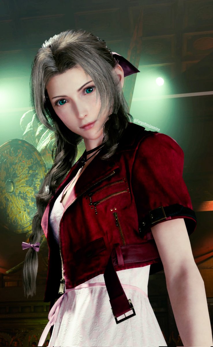 Aerith with green background (FF7) → Similar to Jill, but the PM in FF7 is the worst in any game, so I really like how she looks, her eyes, the pose, and the colors.